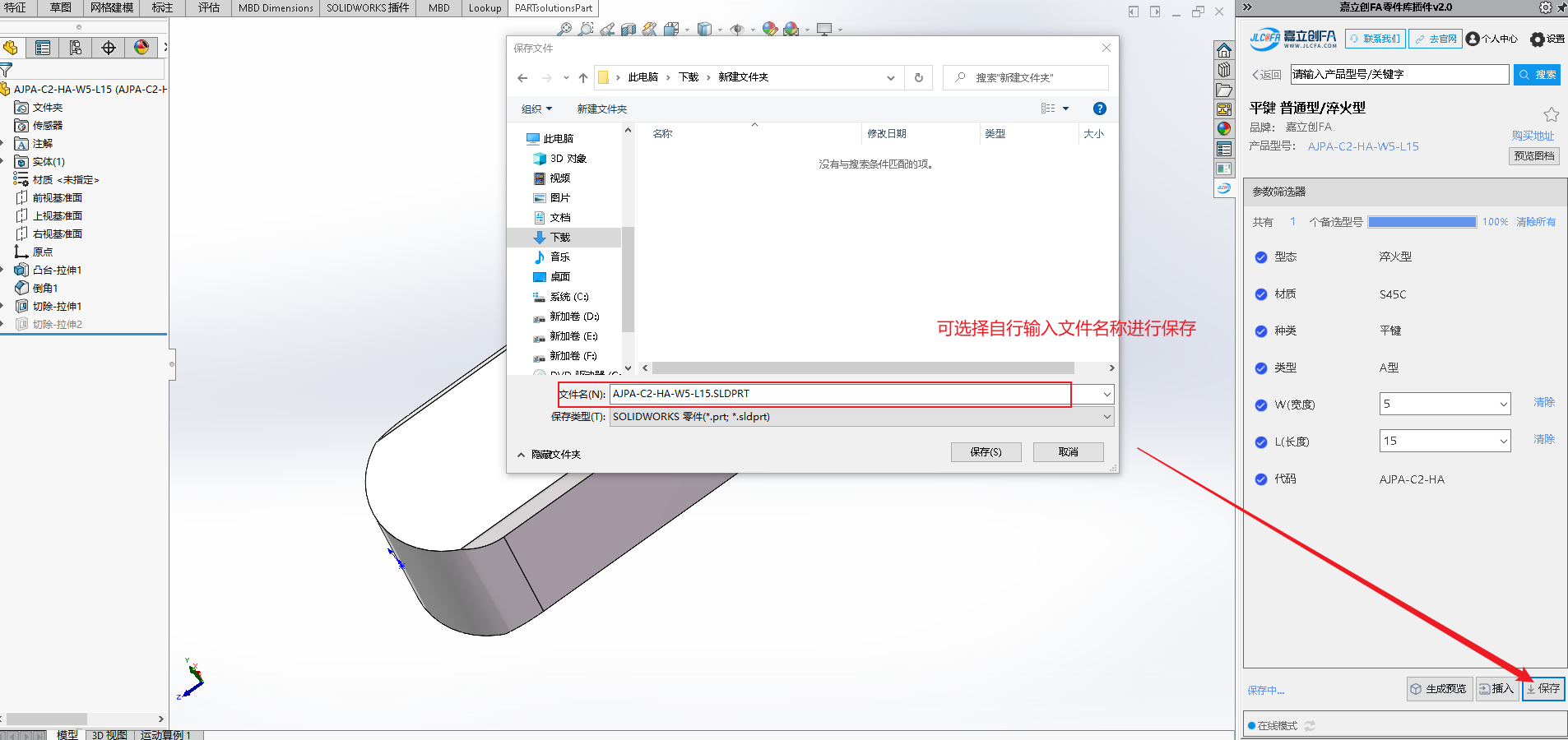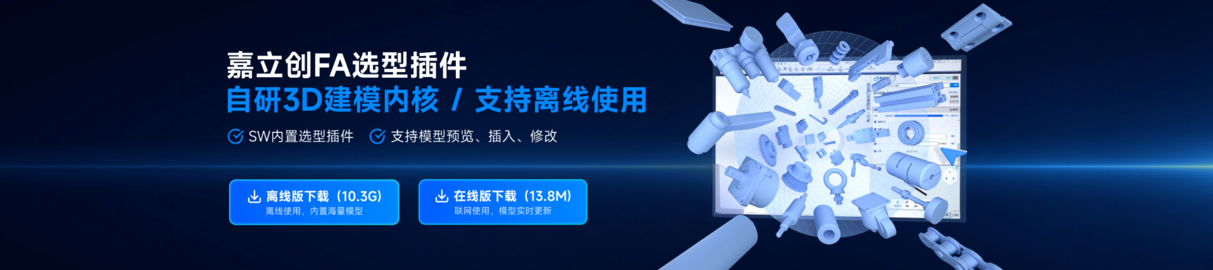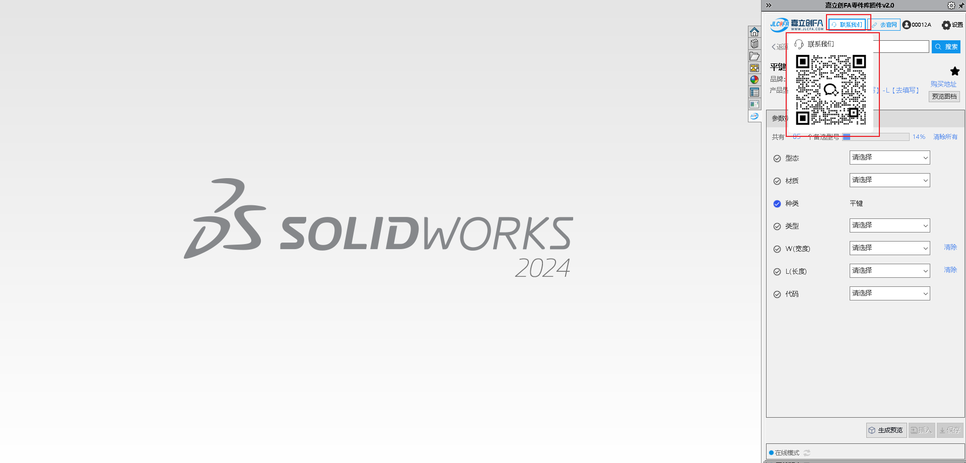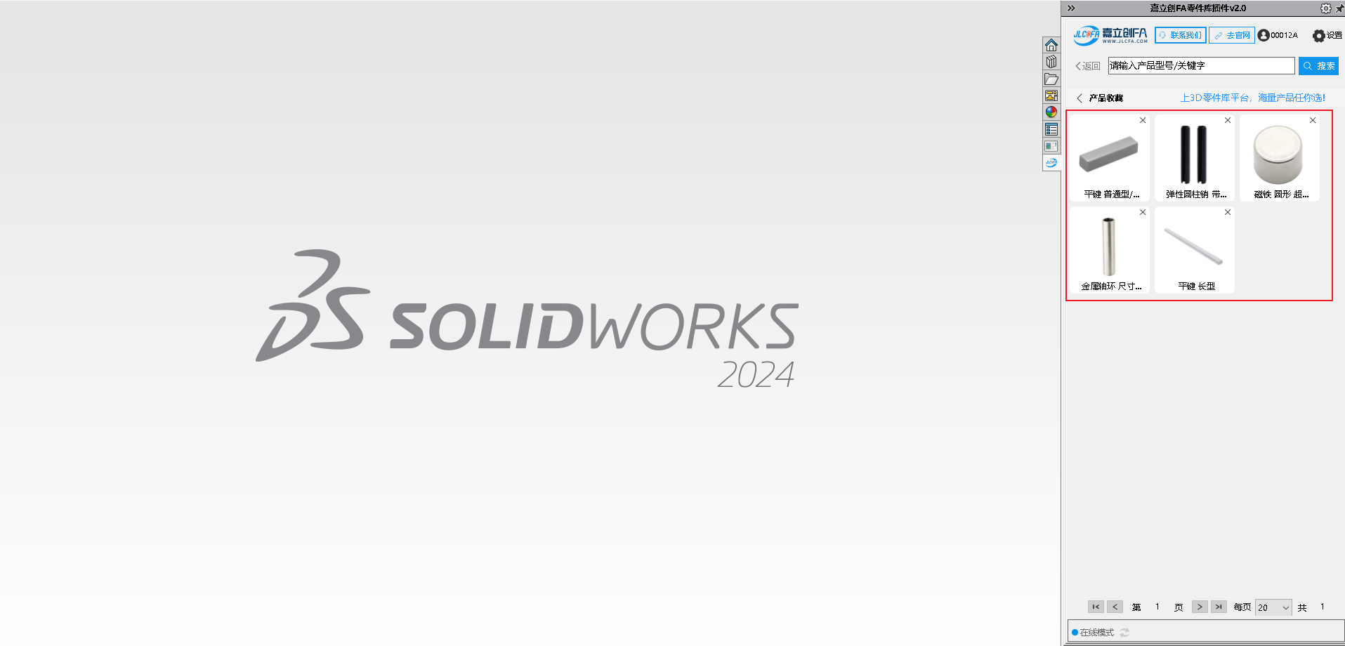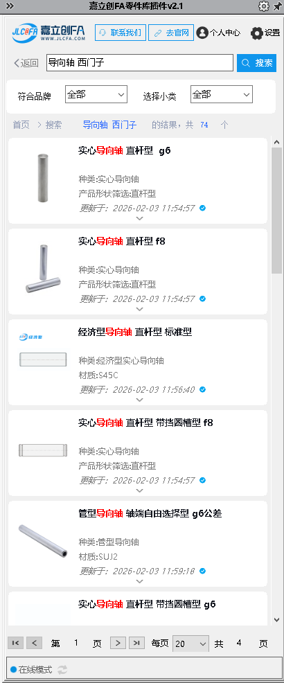 嘉立创 FA 选型插件是一款专为机械工程师打造的免费 SolidWorks 选型工具,致力于提供高效便捷的设计选型支持。插件内置海量 3D 零部件标准模型,搭载动态参数化驱动功能,可灵活调整模型尺寸,同时支持模型预览、本地保存,还能一键将选中模型插入当前装配体,大幅简化设计流程、提升选型效率。