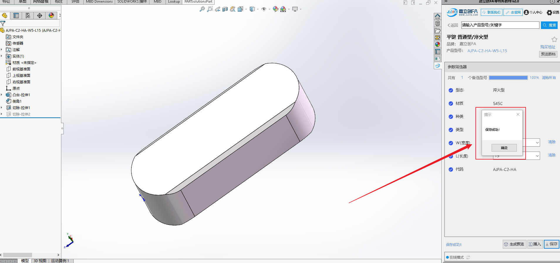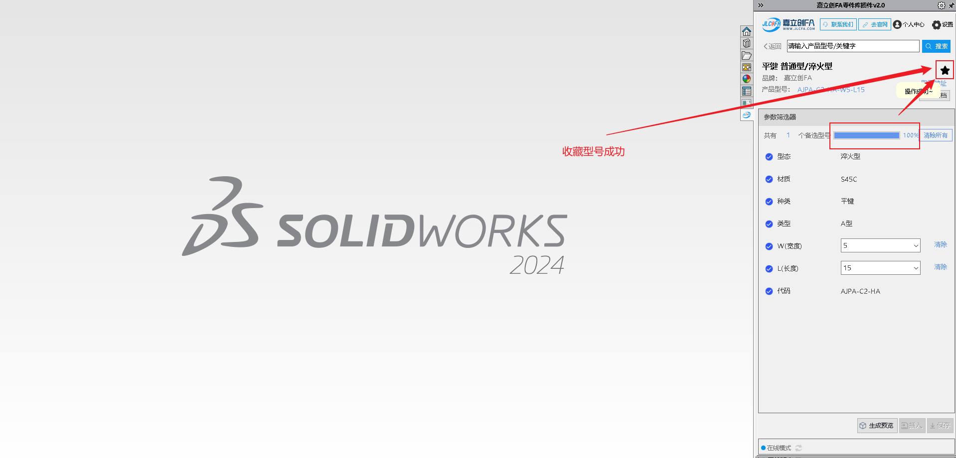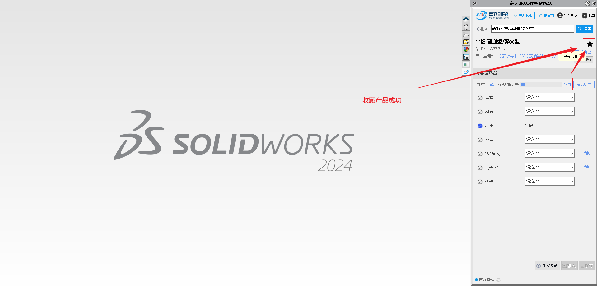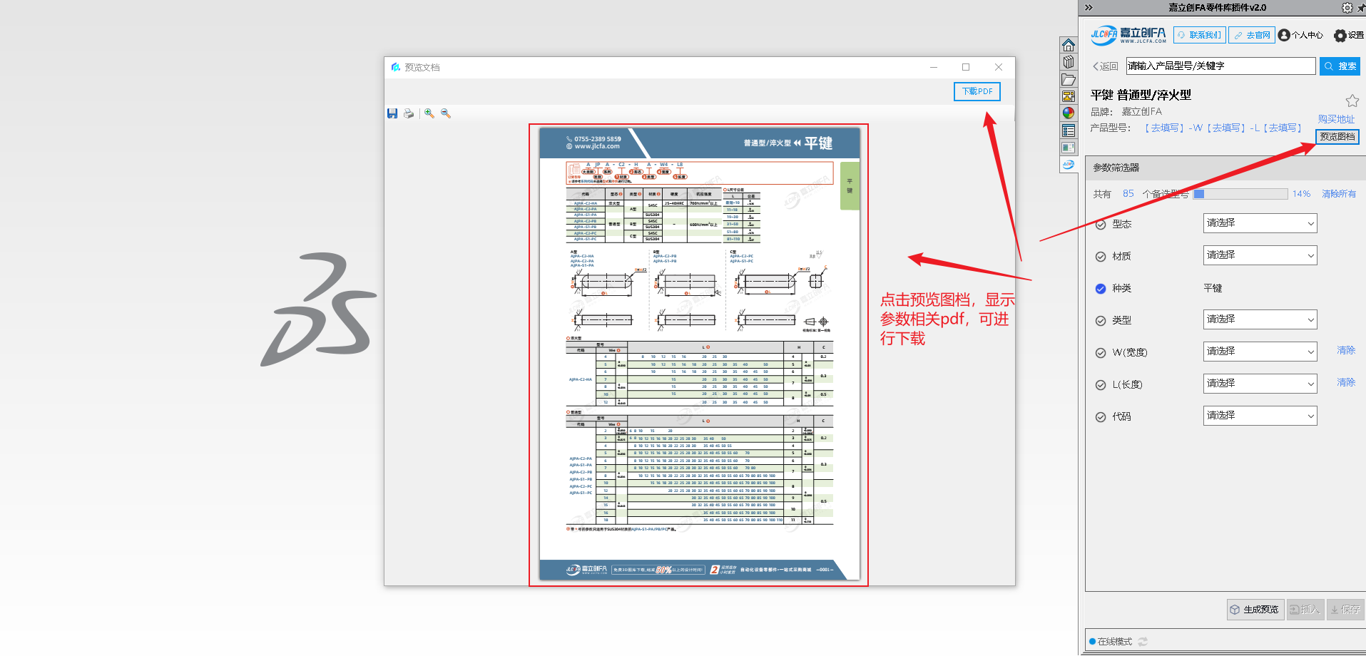 嘉立创 FA 选型插件是一款专为机械工程师打造的免费 SolidWorks 选型工具,致力于提供高效便捷的设计选型支持。插件内置海量 3D 零部件标准模型,搭载动态参数化驱动功能,可灵活调整模型尺寸,同时支持模型预览、本地保存,还能一键将选中模型插入当前装配体,大幅简化设计流程、提升选型效率。