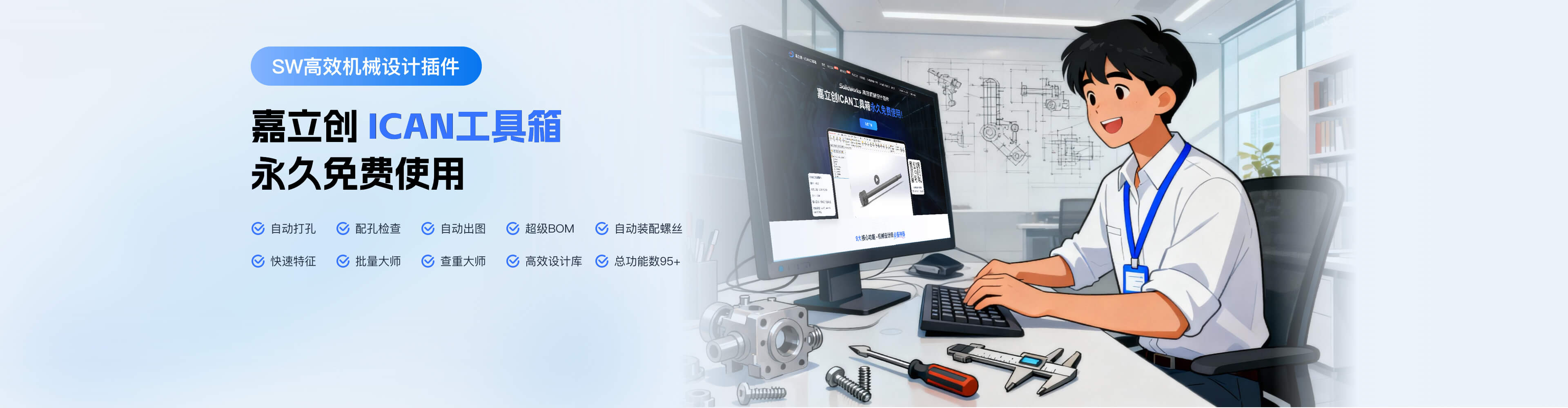 嘉立创Ican工具箱是一款非常实用的Solidworks免费插件,可以有效提高机械工程师的设计效率。目前拥有九大"杀手级"功能,精准解决了机械工程师设计痛点,总功能数更是达到了95+,可以满足不同需求。