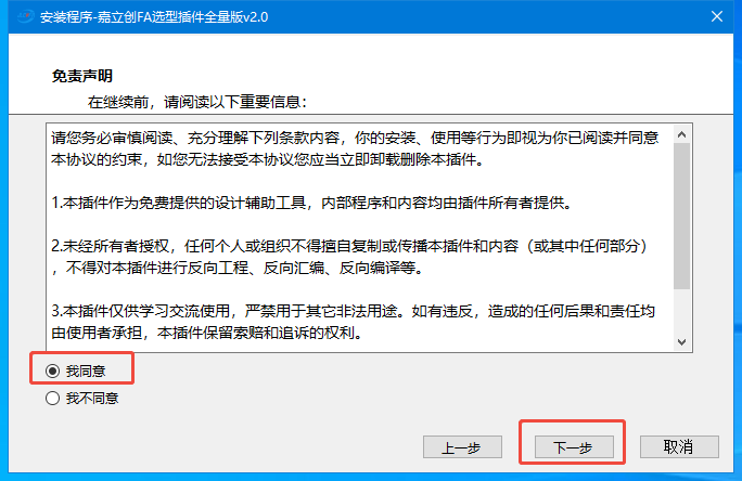 4.点击我同意免责声明,并点击下一步