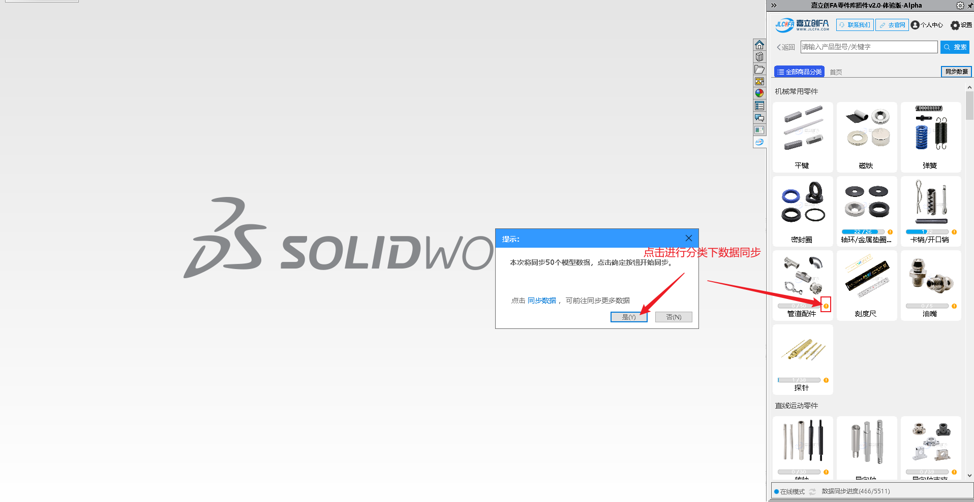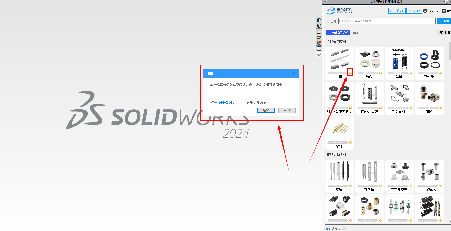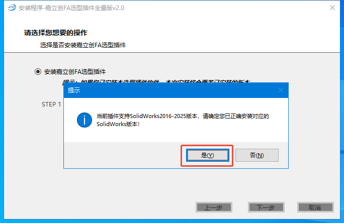 6.弹出友好提示是否安装对应solidworks版本,点击“是”即可