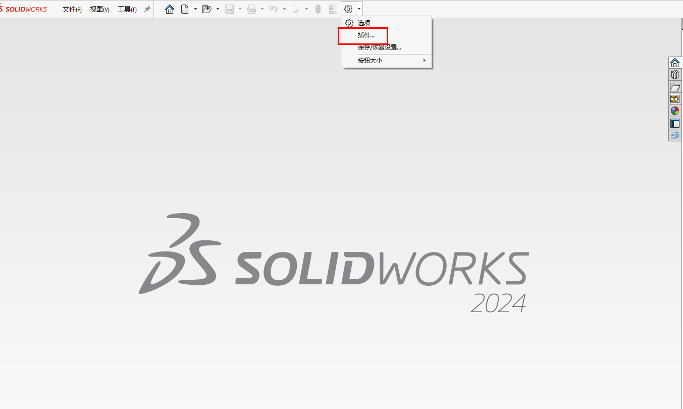 注:若没有看到图标,可以通过点击SW软件顶部的齿轮图标,进入插件设置