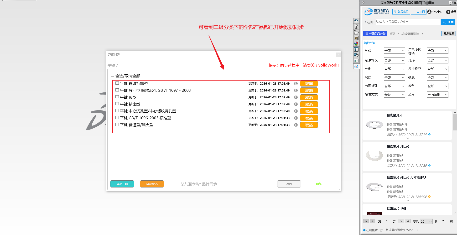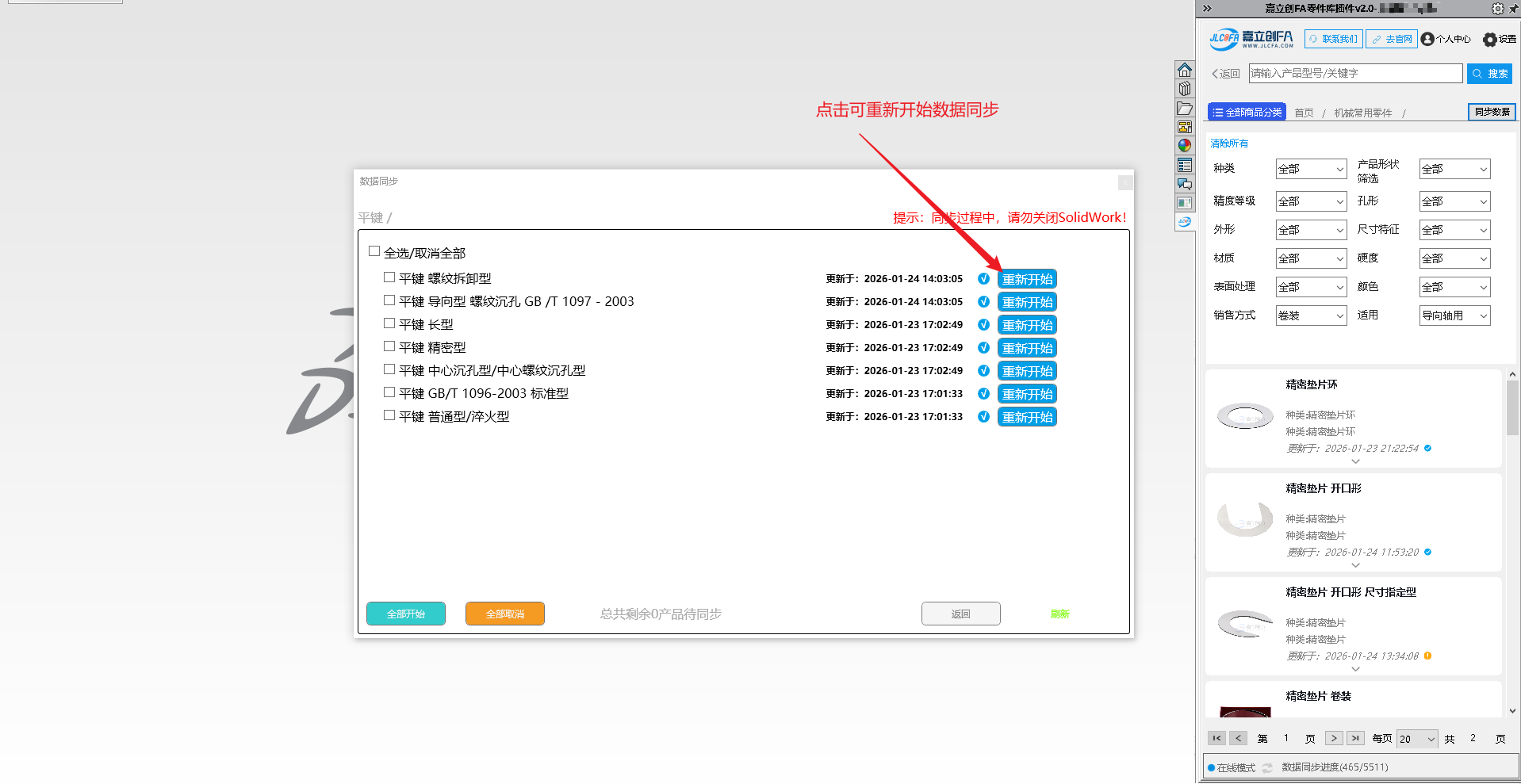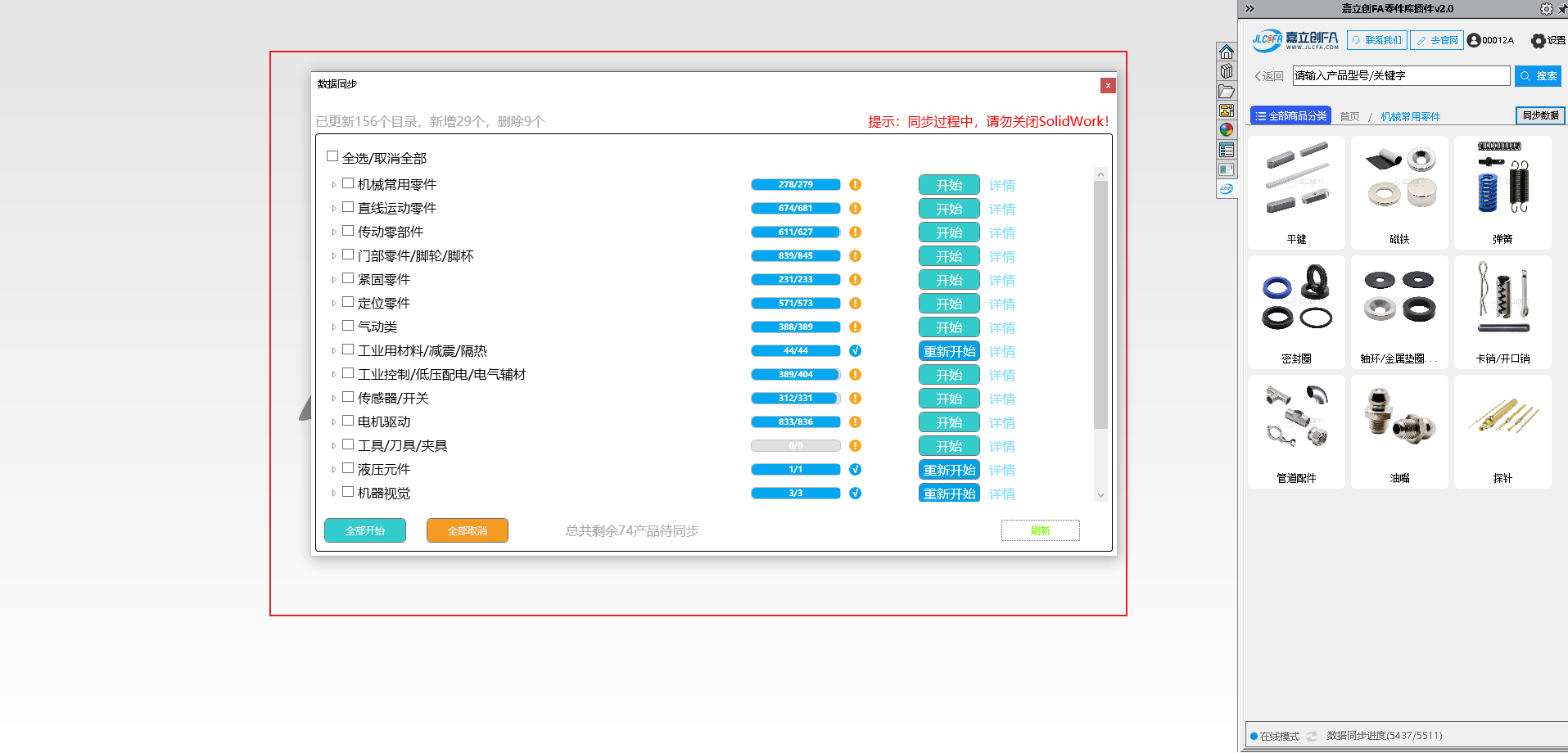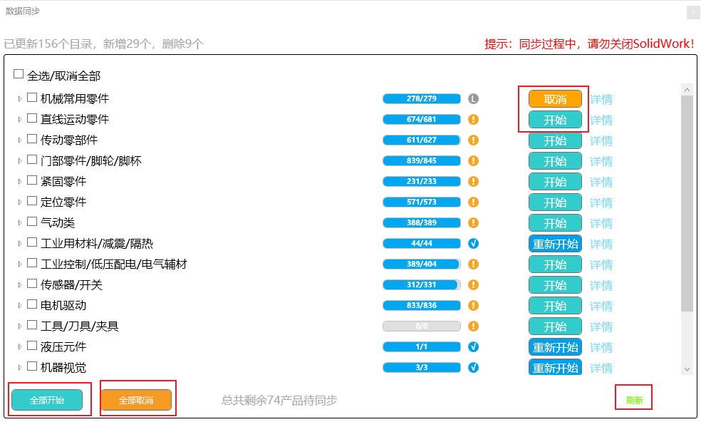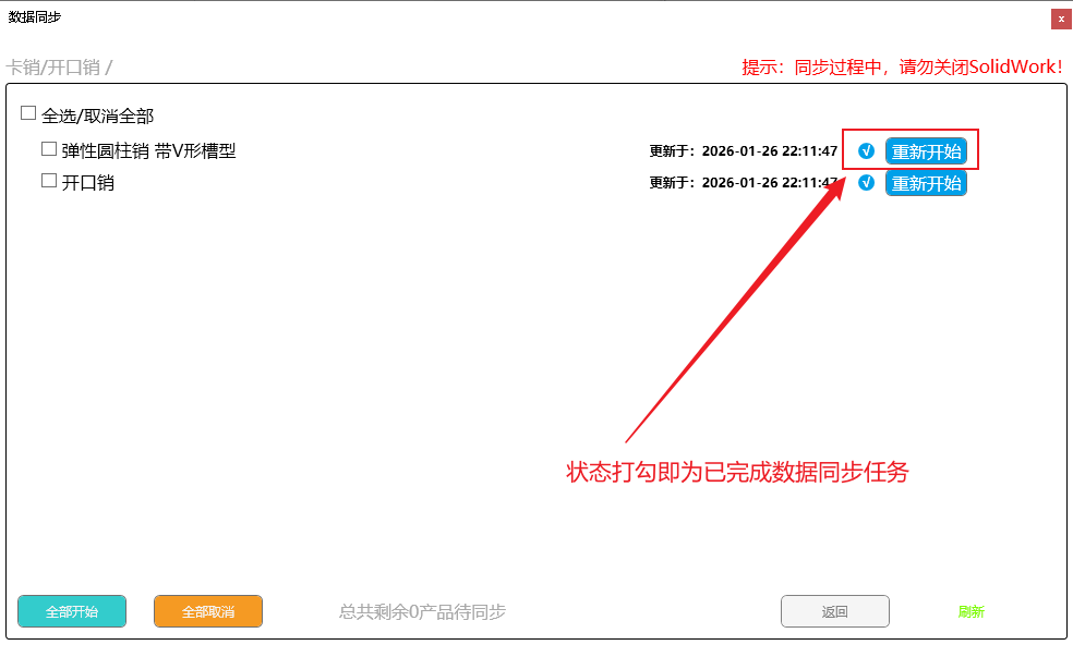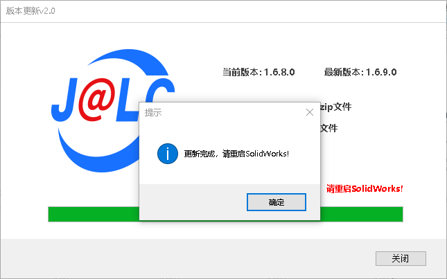 进度条完成后,显示更新完成,需重启SolidWorks软件进行更新后功能使用