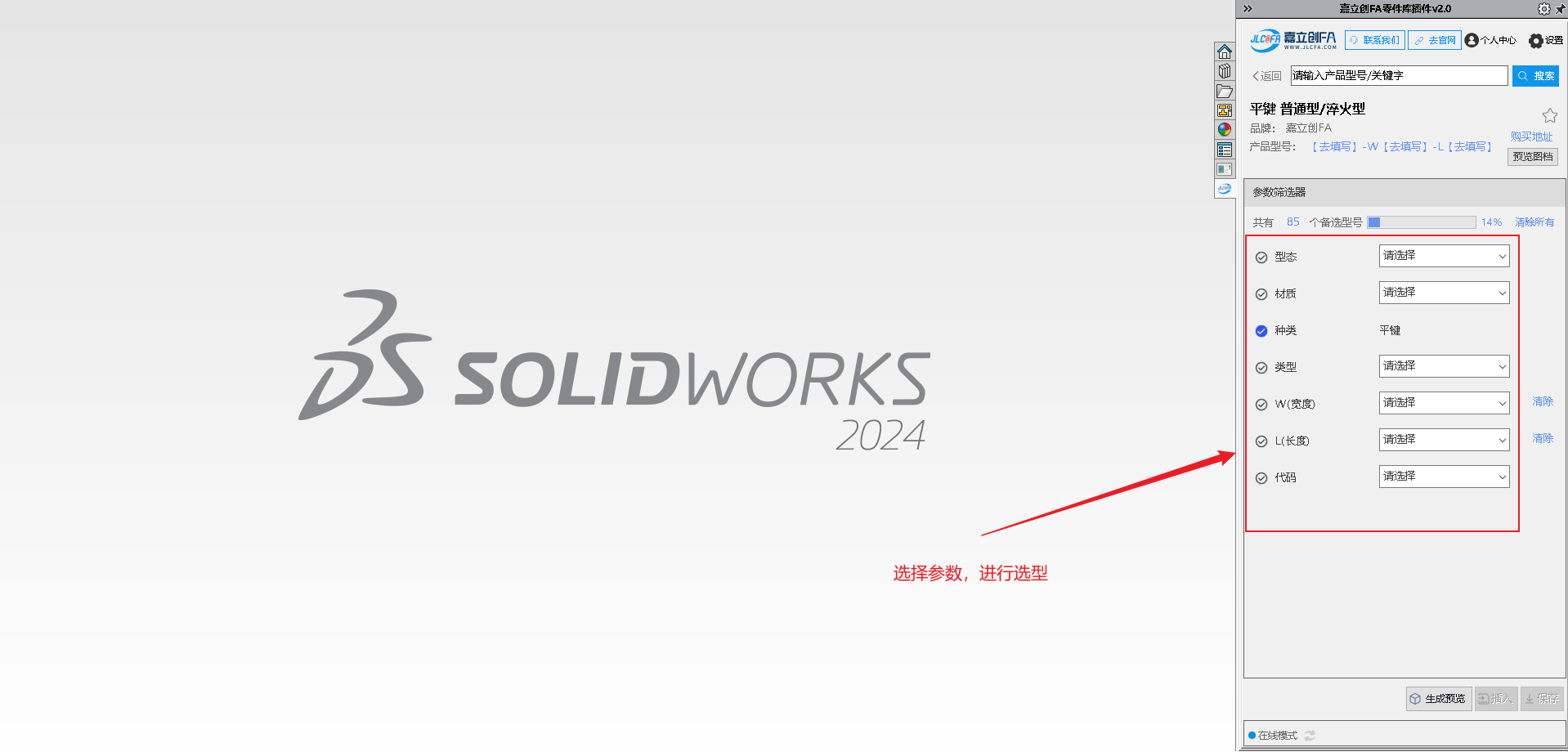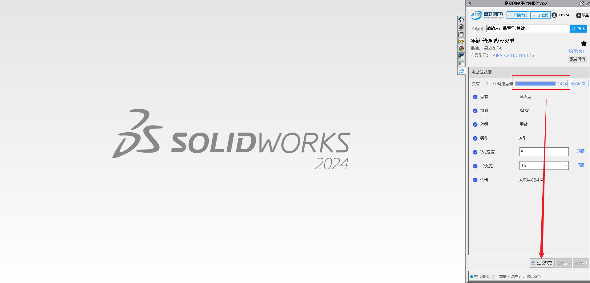 4.选择自己需要的参数,选型完成后点击生成预览(选型进度达100%)