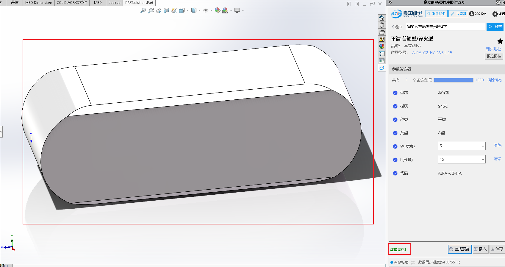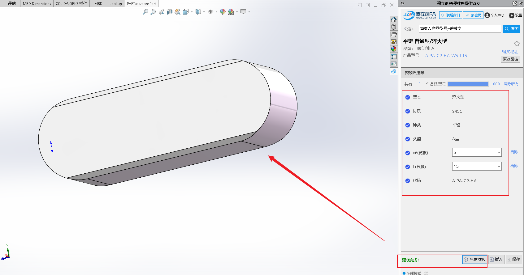 1.选型100%之后,点击”生成预览“(先生成预览模型之后,才可以执行后面的”插入“和”保存“操作):