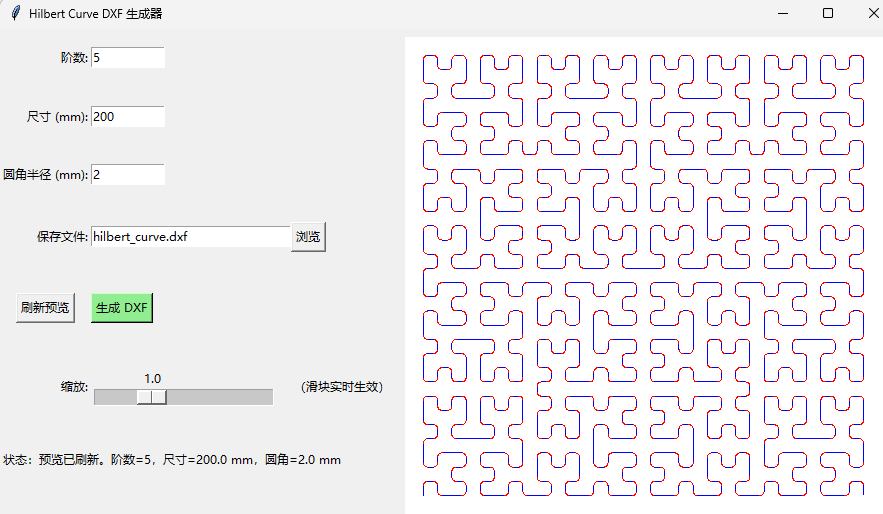 希尔伯特曲线DXF生成器