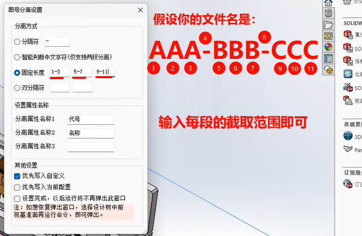 图号分离方式新增固定长度、双分隔符,支持三段式分离